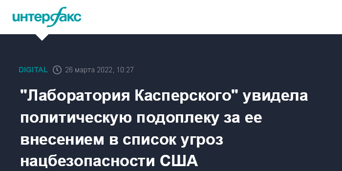 "Расширение запрета на организации, получающие субсидии на телекоммуникационные системы от федеральной комиссии по коммуникациям США, также необоснованно и связано с геополитической обстановкой, а не всесторонней оценкой безопасности продуктов и сервисов "Лаборатории Касперского", - заявили авторы.