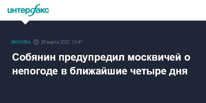 Москва. 26 марта. INTERFAX.RU - До 29 марта в столице прогнозируется ухудшение погоды, гражданам необходимо быть осторожнее, сообщил в субботу мэр Москвы Сергей Собянин.