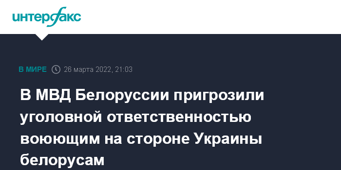 В МВД Белоруссии пригрозили уголовной ответственностью воюющим на стороне Украины белорусам