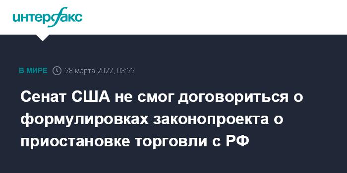 Ранее сенаторы пришли к компромиссу по законопроекту о запрете импорта нефти из РФ. Документ рассматривается в паре с законопроектом о приостановке нормальных торговых отношений с Россией, потому споры по одному из них могут привести к задержке в процессе одобрения обоих.