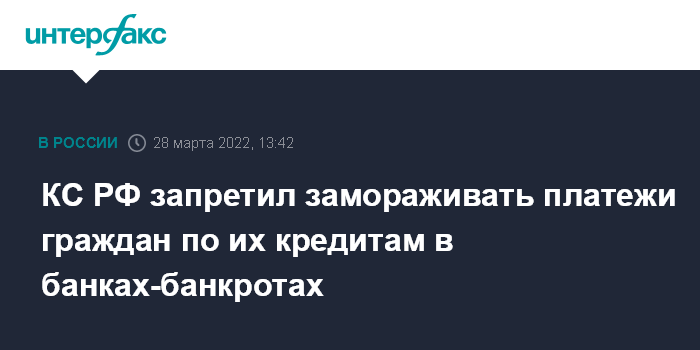 КС РФ запретил замораживать платежи граждан по их кредитам в банках-банкротах