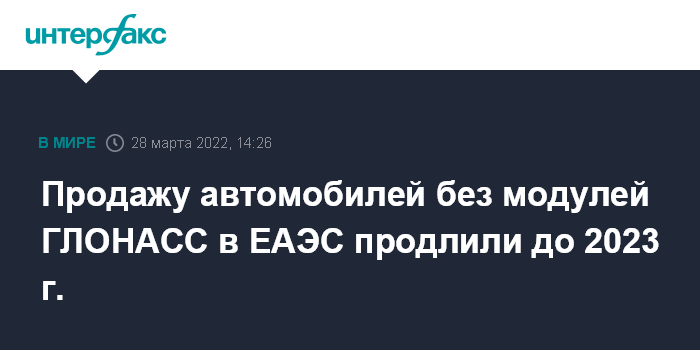 Как сообщалось, в августе 2021 г. коллегия ЕЭК на фоне мирового дефицита полупроводников разрешила автопроизводителям стран ЕАЭС до конца 2021 г. выпускать автотранспорт, не оснащая его электронными модулями вызова экстренных служб ЭРА-ГЛОНАСС. До 2022 г. было разрешено производить без этих устройств транспортные средства (шасси) категорий M1 (легковые автомобили), M2, M3 (автобусы) и N1, N2, N3 (грузовики), за исключением транспорта, предназначенного средств для перевозки опасных грузов и перевозки детей.