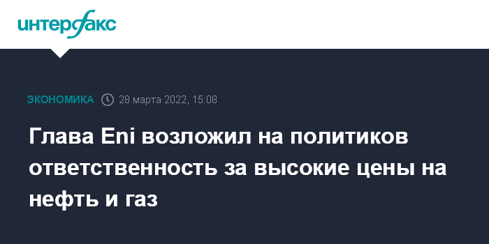 Глава Eni возложил на политиков ответственность за высокие цены на нефть и газ
