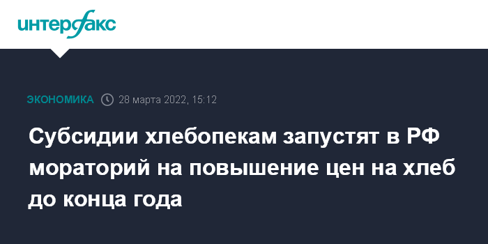 "Для стабилизации цен на хлеб правительство выделило 2,5 млрд рублей из федерального бюджета, средства уже направлены в регионы. Это позволит запустить механизм моратория на повышение цен на хлеб. Благодаря федеральным и региональным субсидиям производители смогут зафиксировать цены на уровне начала или середины марта 2022 года и не допустить роста цен до конца года", - сообщила Абрамченко, слова которой приводит ее пресс-служба.