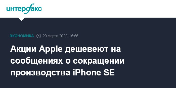 Акции Apple дешевеют на сообщениях о сокращении производства iPhone SE