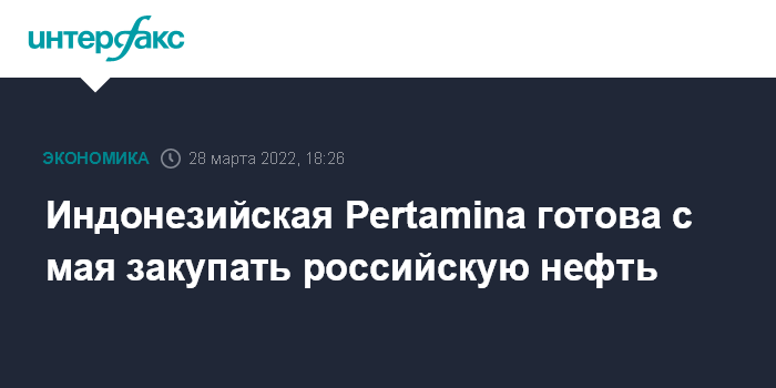 Индонезийская Pertamina готова с мая закупать российскую нефть