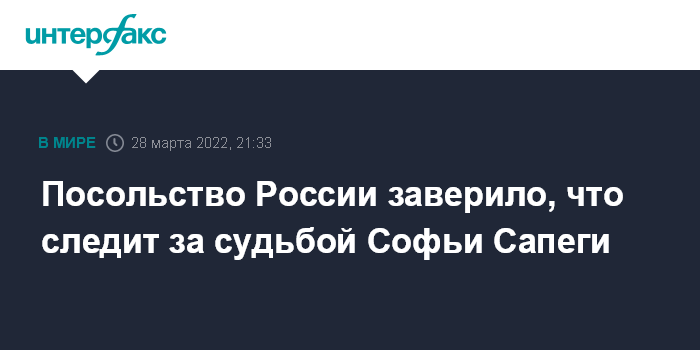 Посольство России заверило, что следит за судьбой Софьи Сапеги