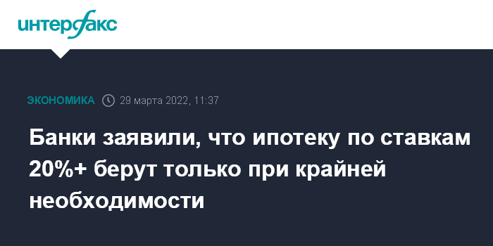 Банки заявили, что ипотеку по ставкам 20%+ берут только при крайней необходимости