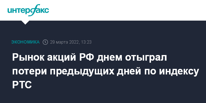 Рынок акций РФ днем отыграл потери предыдущих дней по индексу РТС
