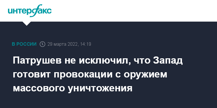 Москва. 29 марта. INTERFAX.RU - Секретарь Совбеза России Николай Патрушев допустил вероятность подготовки западными странами провокации с использованием оружия массового поражения.