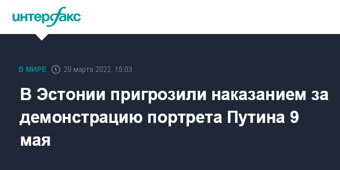 Москва. 29 марта. INTERFAX.RU - Министр юстиции Эстонии Марис Лаури заявила о привлечении к ответственности людей, которые 9 мая придут на возложение венков и цветов к монументу Воина-Освободителя Таллина от фашистов (Бронзовому солдату) с портретом президента РФ.