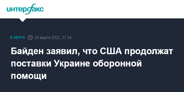 Байден заявил, что США продолжат поставки Украине оборонной помощи
