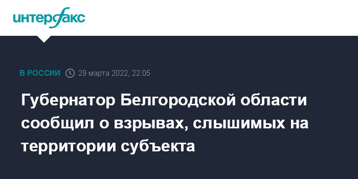 Москва. 29 марта. INTERFAX.RU - Взрывы происходят в Белгородском районе Белгородской области, сообщил губернатор региона Вячеслав Гладков в своем телеграм-канале.