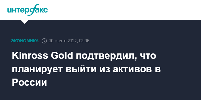 Москва. 30 марта. INTERFAX.RU - Канадский золотодобытчик Kinross Gold подтвердил, что планирует выйти из российских активов.