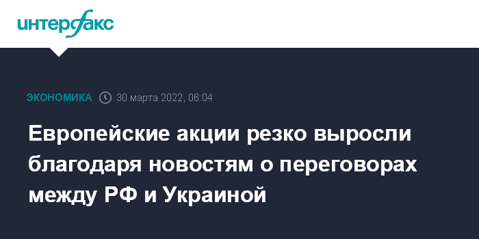 Европейские акции резко выросли благодаря новостям о переговорах между РФ и Украиной