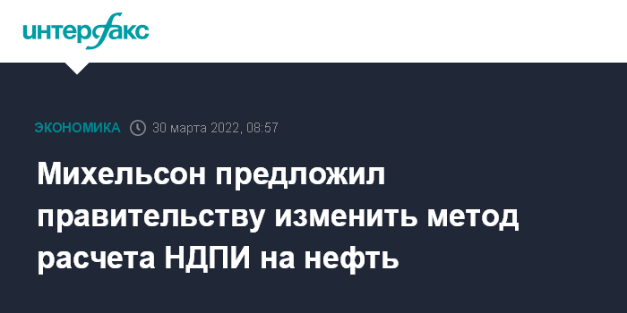 Михельсон предложил правительству изменить метод расчета НДПИ на нефть