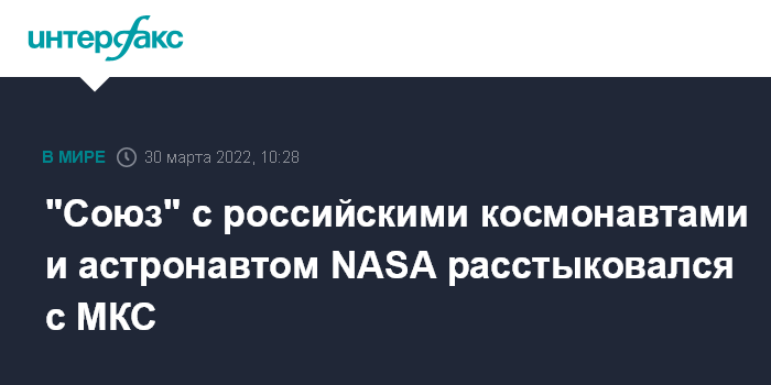"Союз" с российскими космонавтами и астронавтом NASA расстыковался с МКС