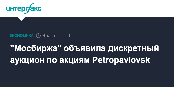 Москва. 30 марта. INTERFAX.RU - "Московская биржа" объявила дискретный аукцион по акциям Petropavlovsk из-за их роста более чем на 20%, говорится в сообщении биржи.