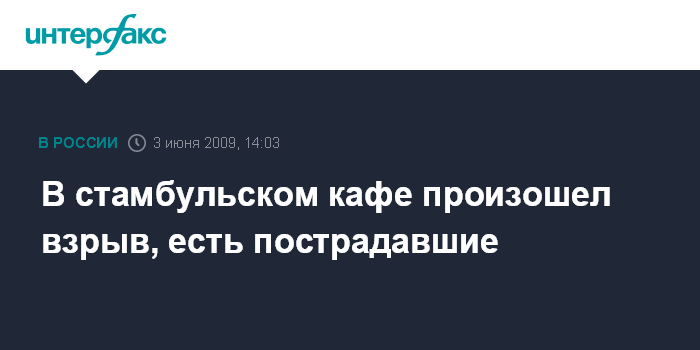 Стамбул. 3 июня. INTERFAX.RU - Взрыв прогремел в среду в кафе в европейском районе Стамбула, сообщают турецкие СМИ.