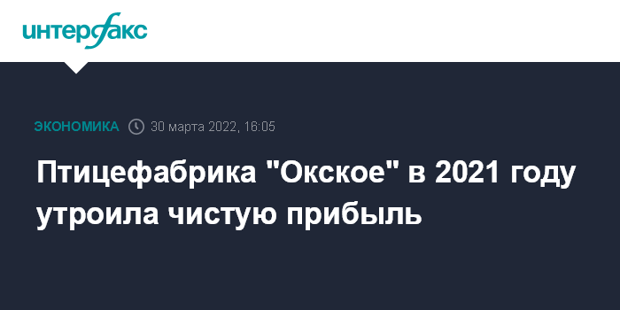 Птицефабрика "Окское" в 2021 году утроила чистую прибыль
