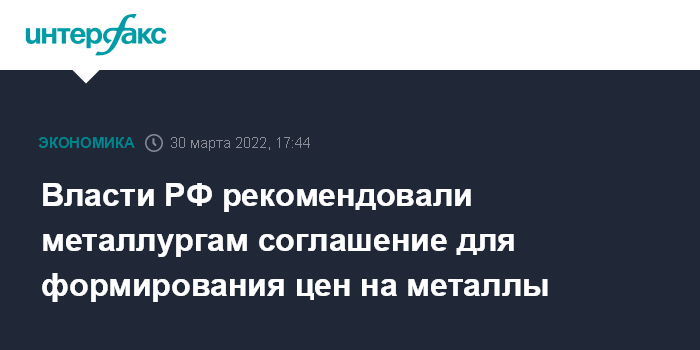 Власти РФ рекомендовали металлургам соглашение для формирования цен на металлы