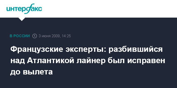 Париж. 3 июня. INTERFAX.RU - Французское Бюро расследований и анализа заявило, что авиалайнер компании "Air France", разбившийся над Атлантикой, не имел каких-либо проблем до вылета из Рио-де-Жанейро.