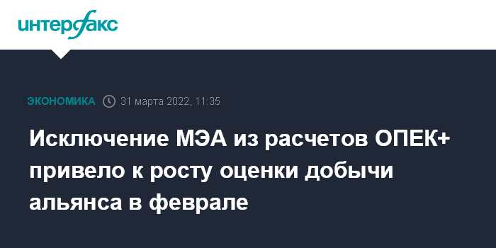 Исключение МЭА из расчетов ОПЕК+ привело к росту оценки добычи альянса в феврале