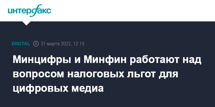 Минцифры и Минфин работают над вопросом налоговых льгот для цифровых медиа