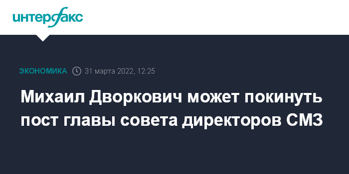 Москва. 31 марта. INTERFAX.RU - Совет директоров ОАО "Соликамский магниевый завод" (СМЗ, Пермский край) 5 апреля рассмотрит вопрос о досрочном прекращении полномочий председателя совета Михаила Дворковича, сообщила компания. На этом же заседании будет утвержден новый глава совета.