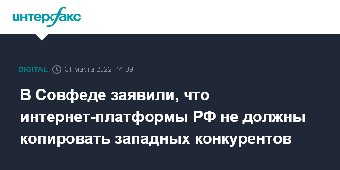 В Совфеде заявили, что интернет-платформы РФ не должны копировать западных конкурентов