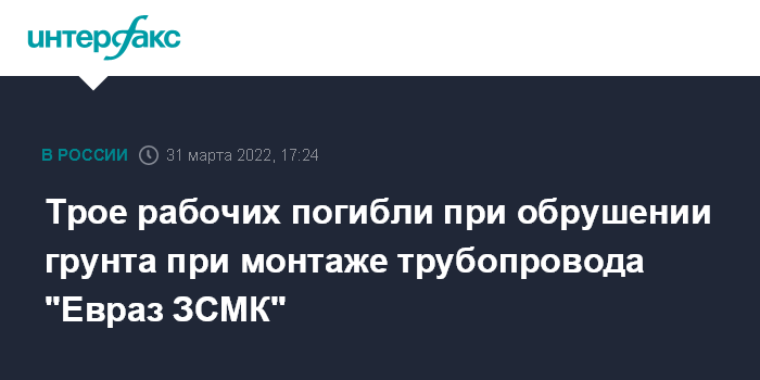 Москва. 31 марта. INTERFAX.RU - Обрушение грунта произошло при монтаже трубопровода подрядной организацией на производственной площадке АО "Евраз объединенный Западно-Сибирский металлургический комбинат" ("Евраз ЗСМК", Новокузнецк, входит в Evraz). Об этом сообщили "Интерфаксу" в управлении по связям с общественностью Evraz.