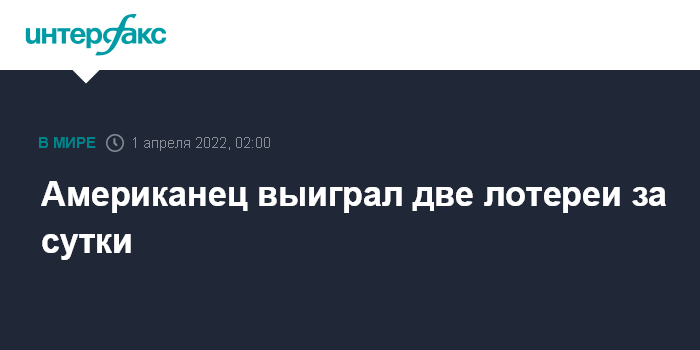 Москва. 1 апреля. INTERFAX.RU - Житель Истона, штат Мэриленд, выиграл $400, а затем $50 000, выбрав пять лотерейных билетов за 24 часа, сообщает агентство United Press International.