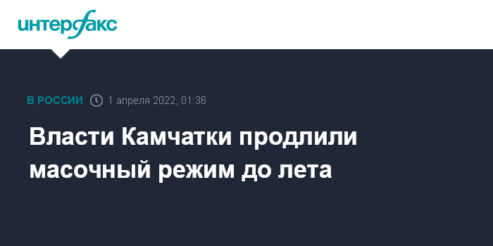 Москва. 1 апреля. INTERFAX.RU - В Камчатском крае до 31 мая включительно продлен масочный режим в общественных местах и на транспорте, соответствующее изменения внесены в постановление губернатора региона о мерах по недопущению распространения новой коронавирусной инфекции.