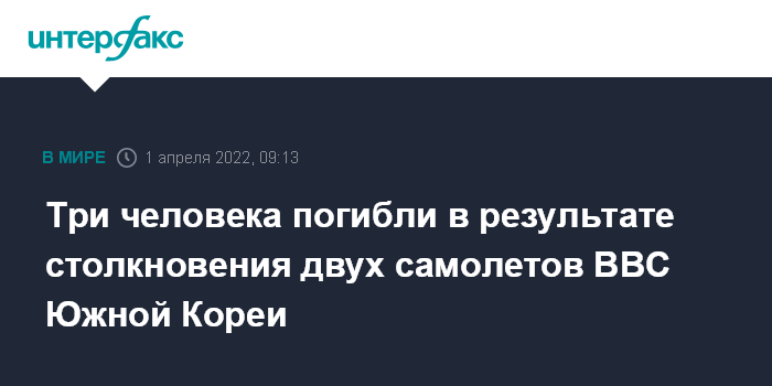 Три человека погибли в результате столкновения двух самолетов ВВС Южной Кореи