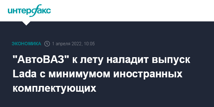Москва. 1 апреля. INTERFAX.RU - "АвтоВАЗ" намерен к началу лета 2022 года наладить производство упрощенных версий Lada с минимальным применением иностранных комплектующих, сообщили в пресс-службе компании.