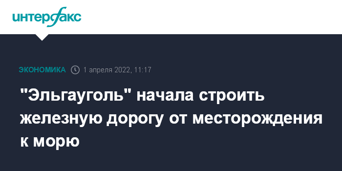 Москва. 1 апреля. INTERFAX.RU - Компания "Эльгауголь", подконтрольная "А-Проперти" Альберта Авдоляна, начала строить частную железнодорожную ветку в районе поселка Чумикан (Хабаровский край) в Удской губе Охотского моря для вывоза угля с Эльгинского месторождения в Якутии.