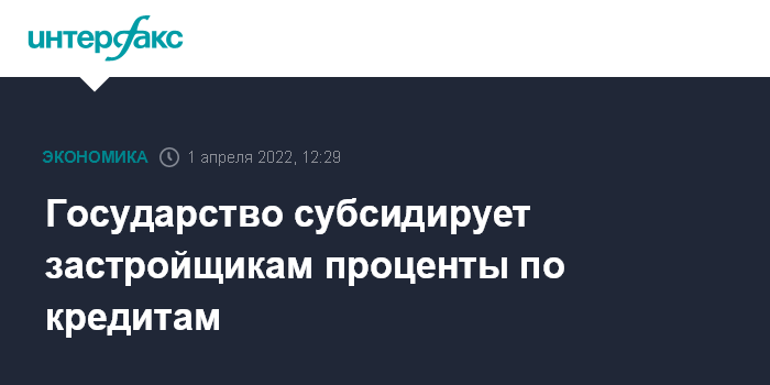 Москва. 1 апреля. INTERFAX.RU - Государство готово возмещать банкам недополученные доходы, если они будут выдавать кредиты застройщикам по ставке не выше 15% годовых, такое постановление подписал премьер-министр Михаил Мишустин. Об этом сообщает сайт правительства.