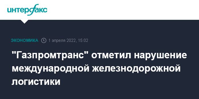 Москва. 1 апреля. INTERFAX.RU - Один из крупнейших российских железнодорожных операторов ООО "Газпромтранс" отмечает нарушение железнодорожной логистики на фоне геополитической обстановки.