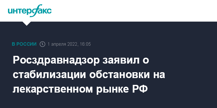 Москва. 1 апреля. INTERFAX.RU - Обстановка на рынке лекарственных препаратов в России стабилизируется, спрос на препараты снижается, сообщили в пятницу в пресс-службе Росздравнадзора.