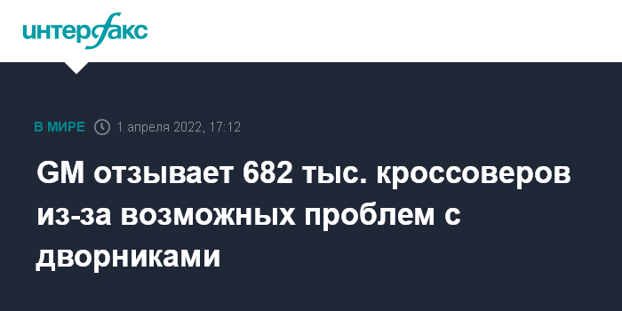 GM отзывает 682 тыс. кроссоверов из-за возможных проблем с дворниками