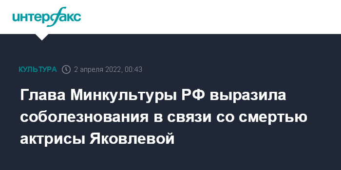 Глава Минкультуры РФ выразила соболезнования в связи со смертью актрисы Яковлевой