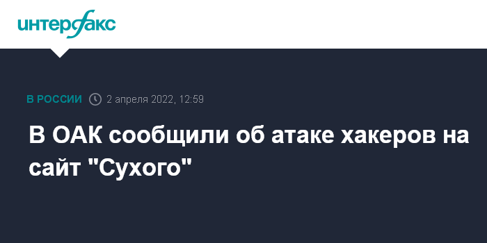 Москва. 2 апреля. INTERFAX.RU - Сайт компании-производителя российских боевых самолетов "Сухой" подвергся хакерской атаке, сообщил глава Объединенной авиастроительной корпорации (ОАК) Юрий Слюсарь.