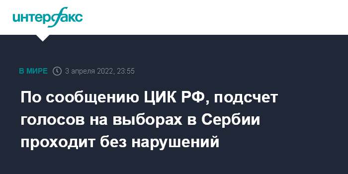 По сообщению ЦИК РФ, подсчет голосов на выборах в Сербии проходит без нарушений
