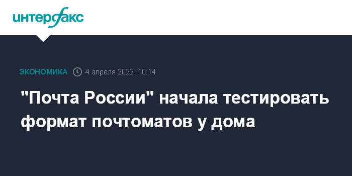 Москва. 4 апреля. INTERFAX.RU - "Почта России" начала тестировать почтоматы нового формата, которые можно устанавливать в подъездах жилых домов или на улице, говорится в сообщении компании.