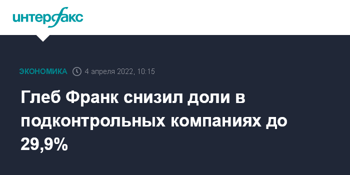 Глеб Франк снизил доли в подконтрольных компаниях до 29,9%