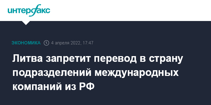 Литва запретит перевод в страну подразделений международных компаний из РФ