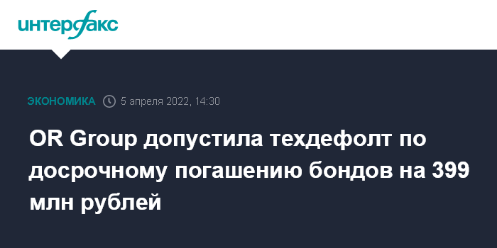 OR Group допустила техдефолт по досрочному погашению бондов на 399 млн рублей
