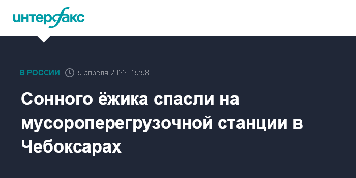Москва. 5 апреля. INTERFAX.RU - Живой ёж был найден на линии сортировки мусороперегрузочной станции в Чебоксарах (Чувашия). Об этом сообщается на сайте компании по переработке и утилизации отходов на территории региона во вторник.