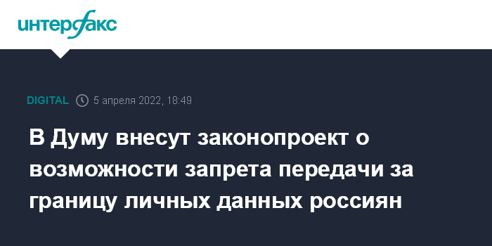 В пояснительной записке отмечается, что действующим законодательством практически не регулируется трансграничная передача персональных данных, что создает существенную угрозу в условиях текущей внешнеполитической ситуации.