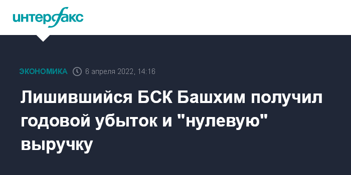 Лишившийся БСК Башхим получил годовой убыток и "нулевую" выручку